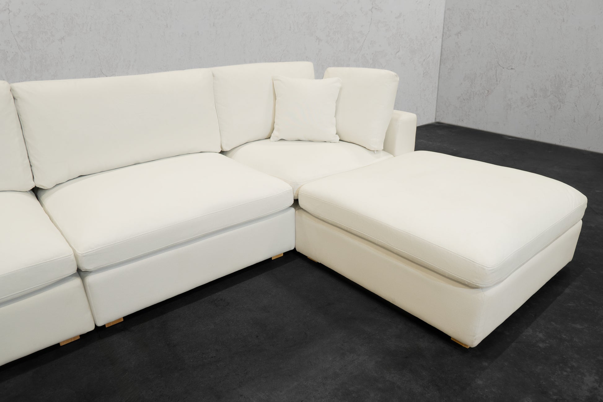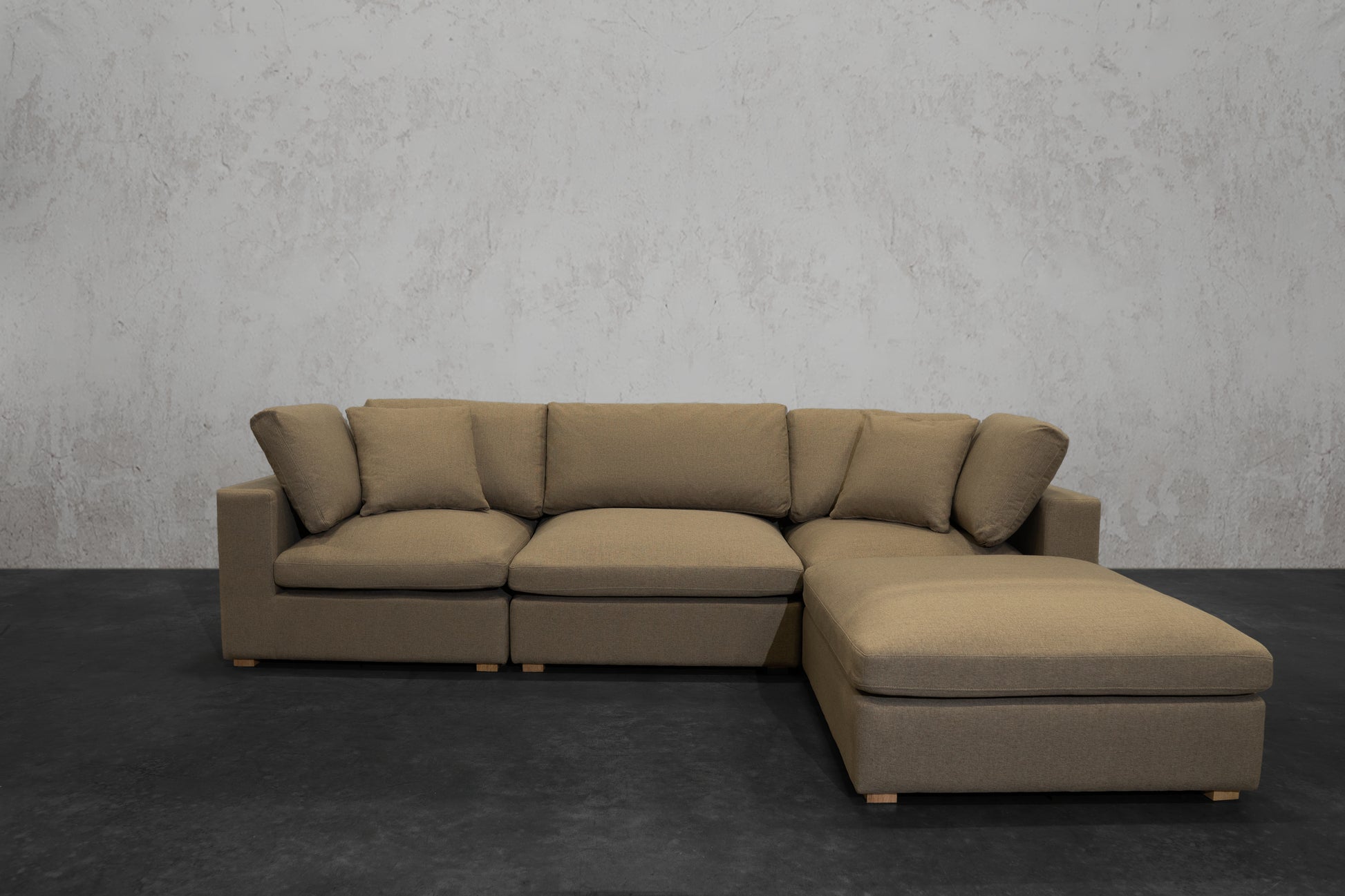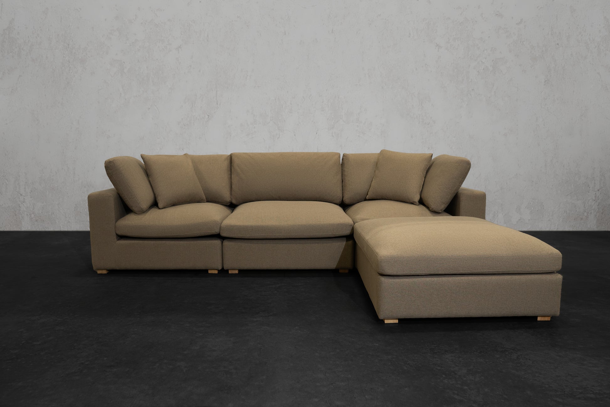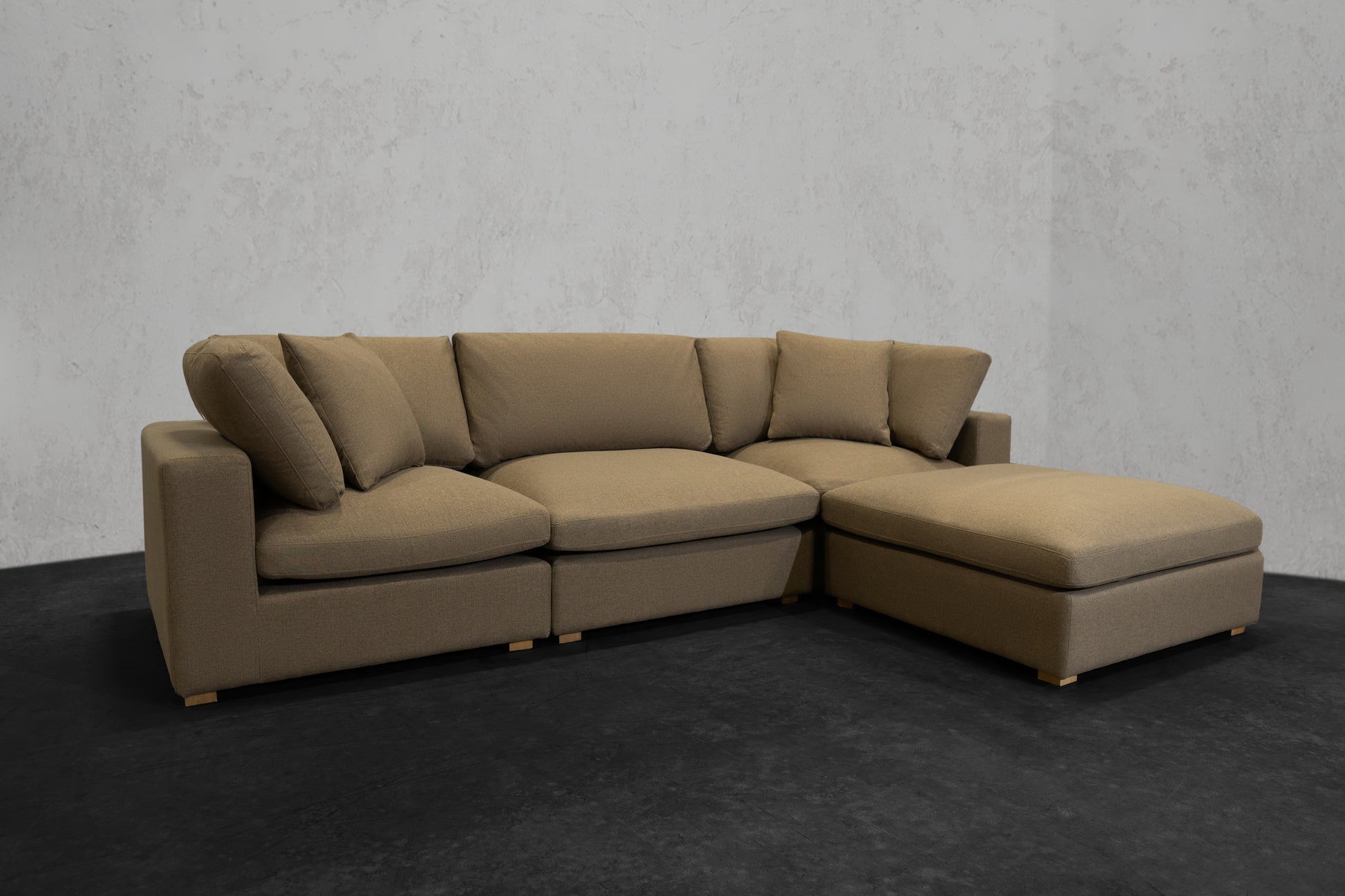 Our NEXUS Modular Series reinvented the traditional cloud couch. Thanks to our Innovative Hybrid Down Fill Technology, the cushions maintain their shape and health for a lifetime. We infused down fill feathers with poly cotton fibers in a unique way to provide the cloud-like Sink-In feel of feathers without requiring fluffing every time you get up. Additionally, the gel memory foam bottom layer prevents the feather blend from clumping and can be flipped for a non-sink-in medium plush feel. It's a win-win for all types of users. What's more, the fabric used has a high rub count of 130,000 and is treated to be water repellent and stain-proof as well as scratch-resistant, making it perfect for pet owners. The single-piece frame construction of our chemical-free, kiln-dried wood frames ensures durability and eliminates the need for stress and assembly upon delivery. We prioritize quality and do not cut corners like many other brands that skimp on the crucial component of any couch: the frame.