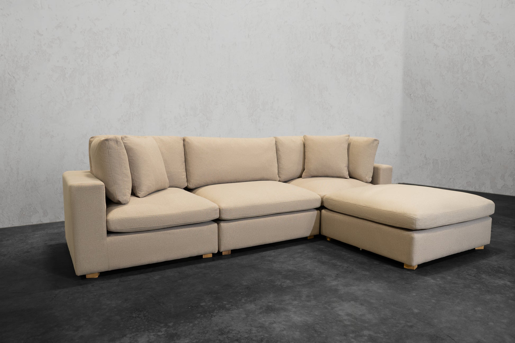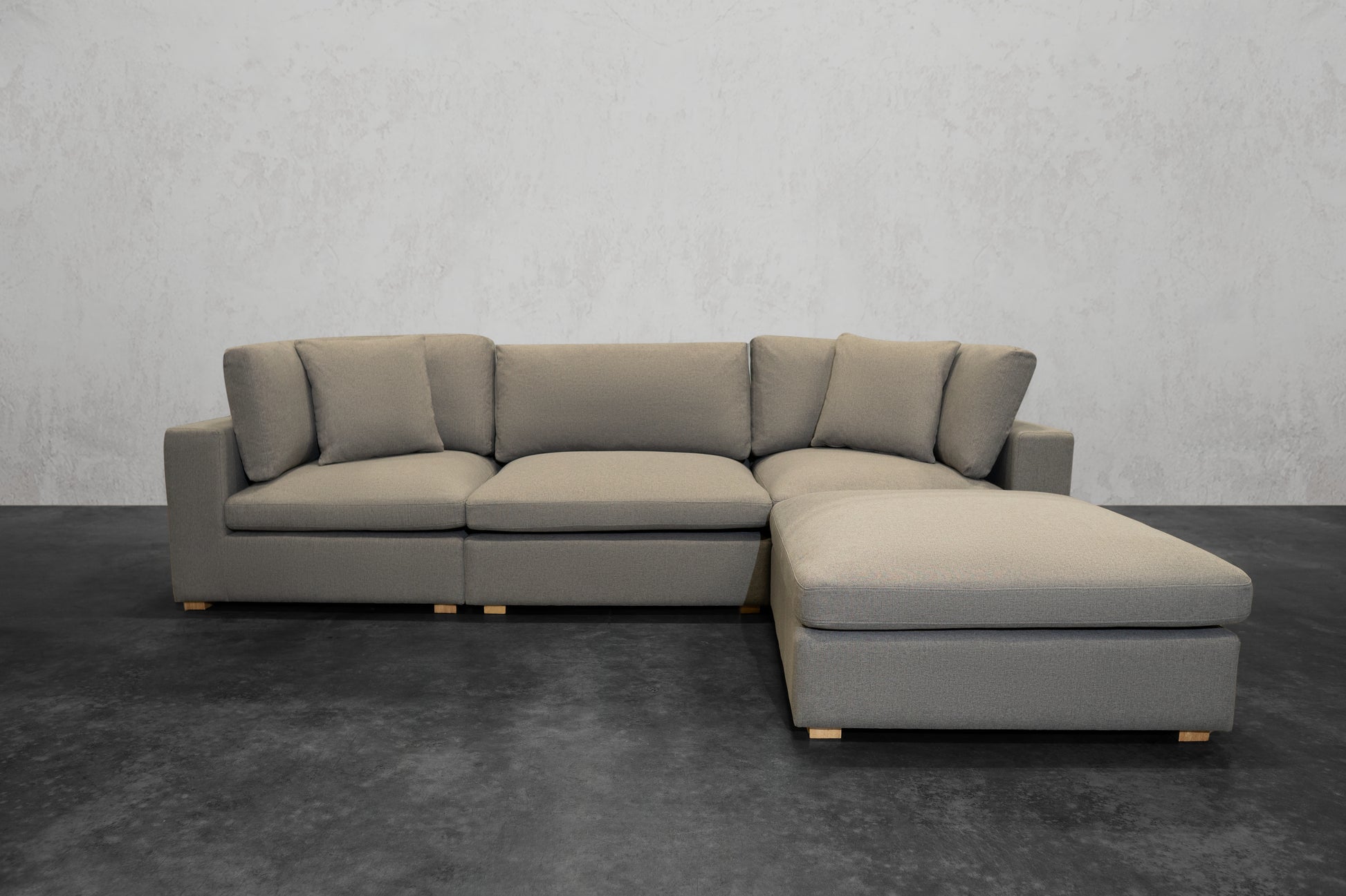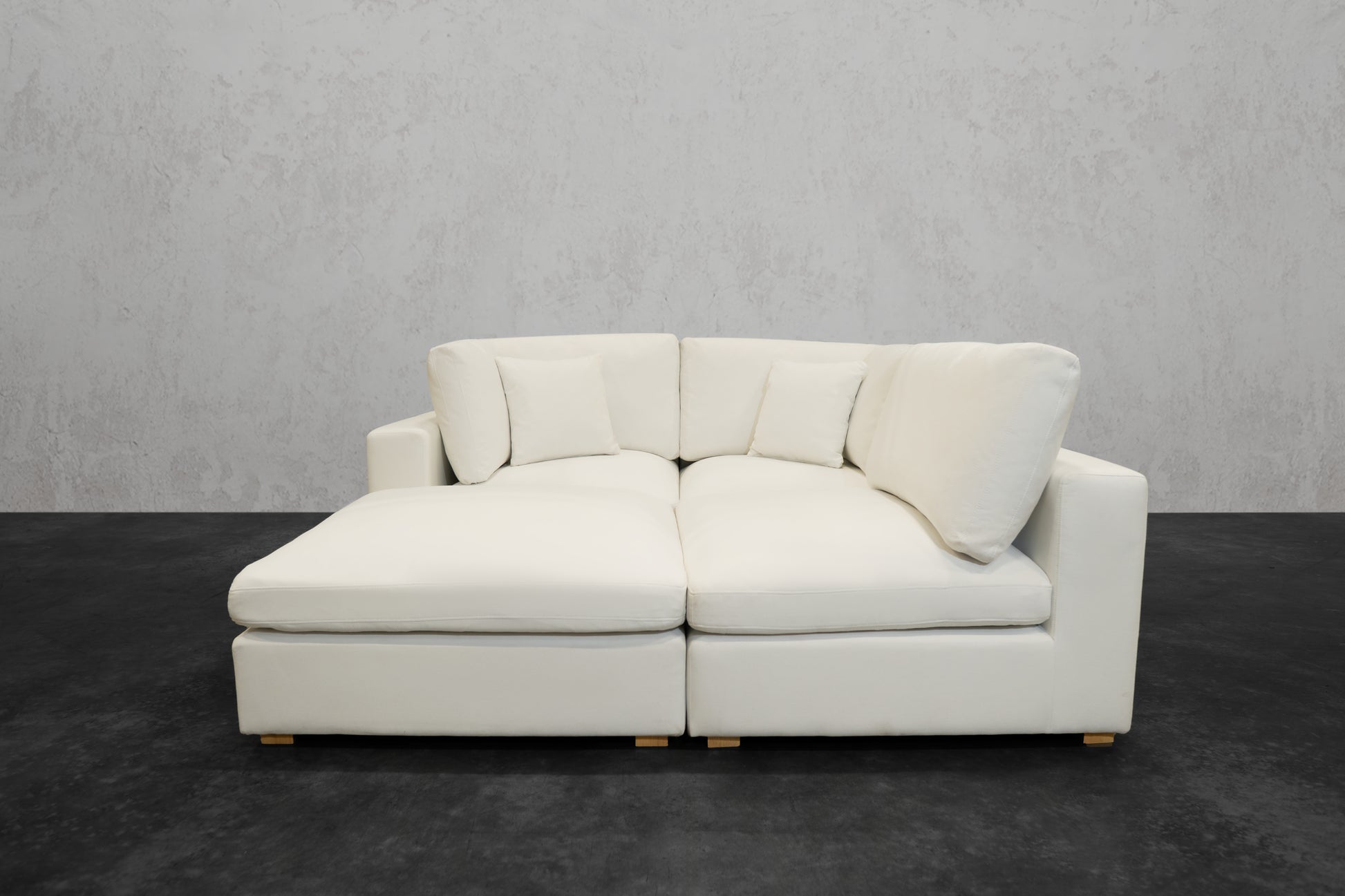 Our NEXUS Modular Series reinvented the traditional cloud couch. Thanks to our Innovative Hybrid Down Fill Technology, the cushions maintain their shape and health for a lifetime. We infused down fill feathers with poly cotton fibers in a unique way to provide the cloud-like Sink-In feel of feathers without requiring fluffing every time you get up. Additionally, the gel memory foam bottom layer prevents the feather blend from clumping and can be flipped for a non-sink-in medium plush feel. It's a win-win for all types of users. What's more, the fabric used has a high rub count of 130,000 and is treated to be water repellent and stain-proof as well as scratch-resistant, making it perfect for pet owners. The single-piece frame construction of our chemical-free, kiln-dried wood frames ensures durability and eliminates the need for stress and assembly upon delivery. We prioritize quality and do not cut corners like many other brands that skimp on the crucial component of any couch: the frame.