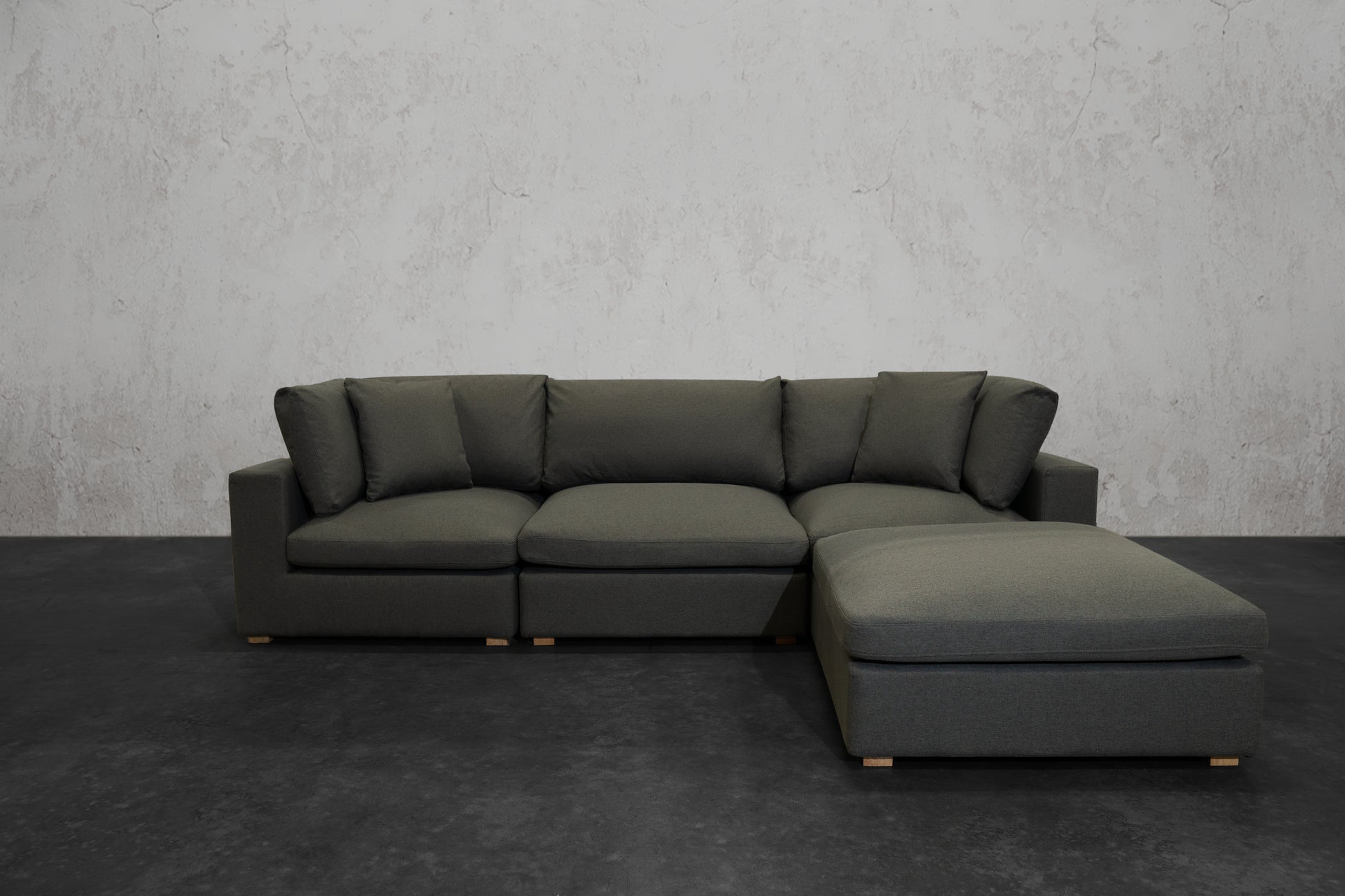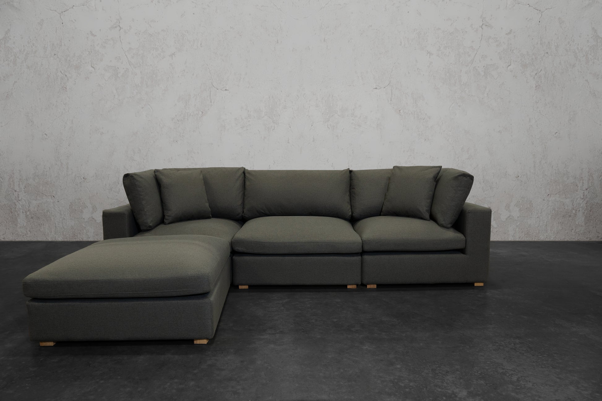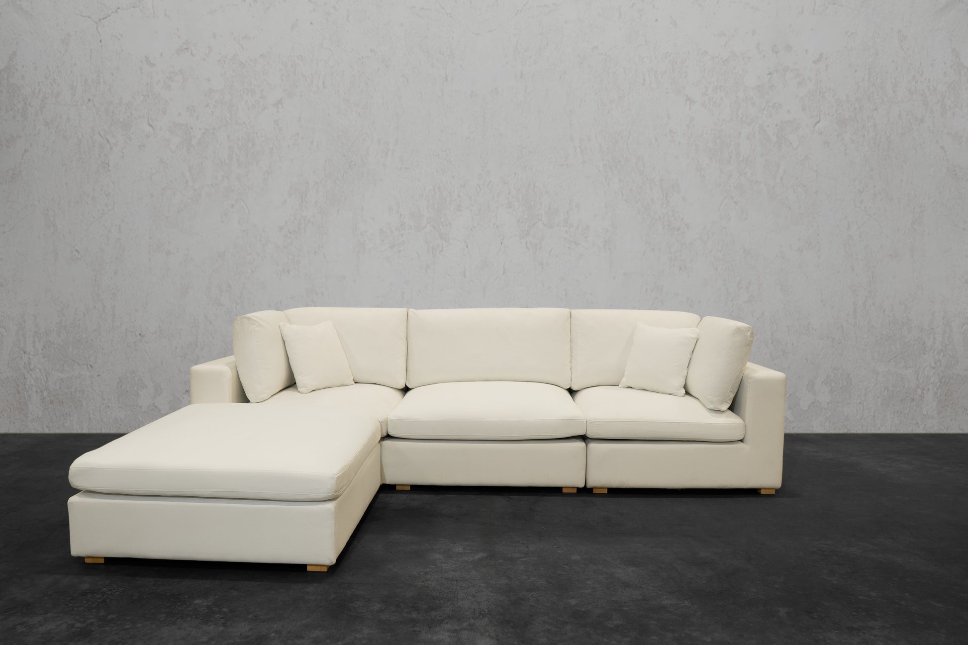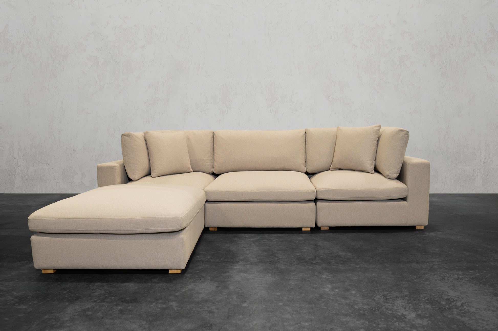 Our NEXUS Modular Series reinvented the traditional cloud couch. Thanks to our Innovative Hybrid Down Fill Technology, the cushions maintain their shape and health for a lifetime. We infused down fill feathers with poly cotton fibers in a unique way to provide the cloud-like Sink-In feel of feathers without requiring fluffing every time you get up. Additionally, the gel memory foam bottom layer prevents the feather blend from clumping and can be flipped for a non-sink-in medium plush feel. It's a win-win for all types of users. What's more, the fabric used has a high rub count of 130,000 and is treated to be water repellent and stain-proof as well as scratch-resistant, making it perfect for pet owners. The single-piece frame construction of our chemical-free, kiln-dried wood frames ensures durability and eliminates the need for stress and assembly upon delivery. We prioritize quality and do not cut corners like many other brands that skimp on the crucial component of any couch: the frame.