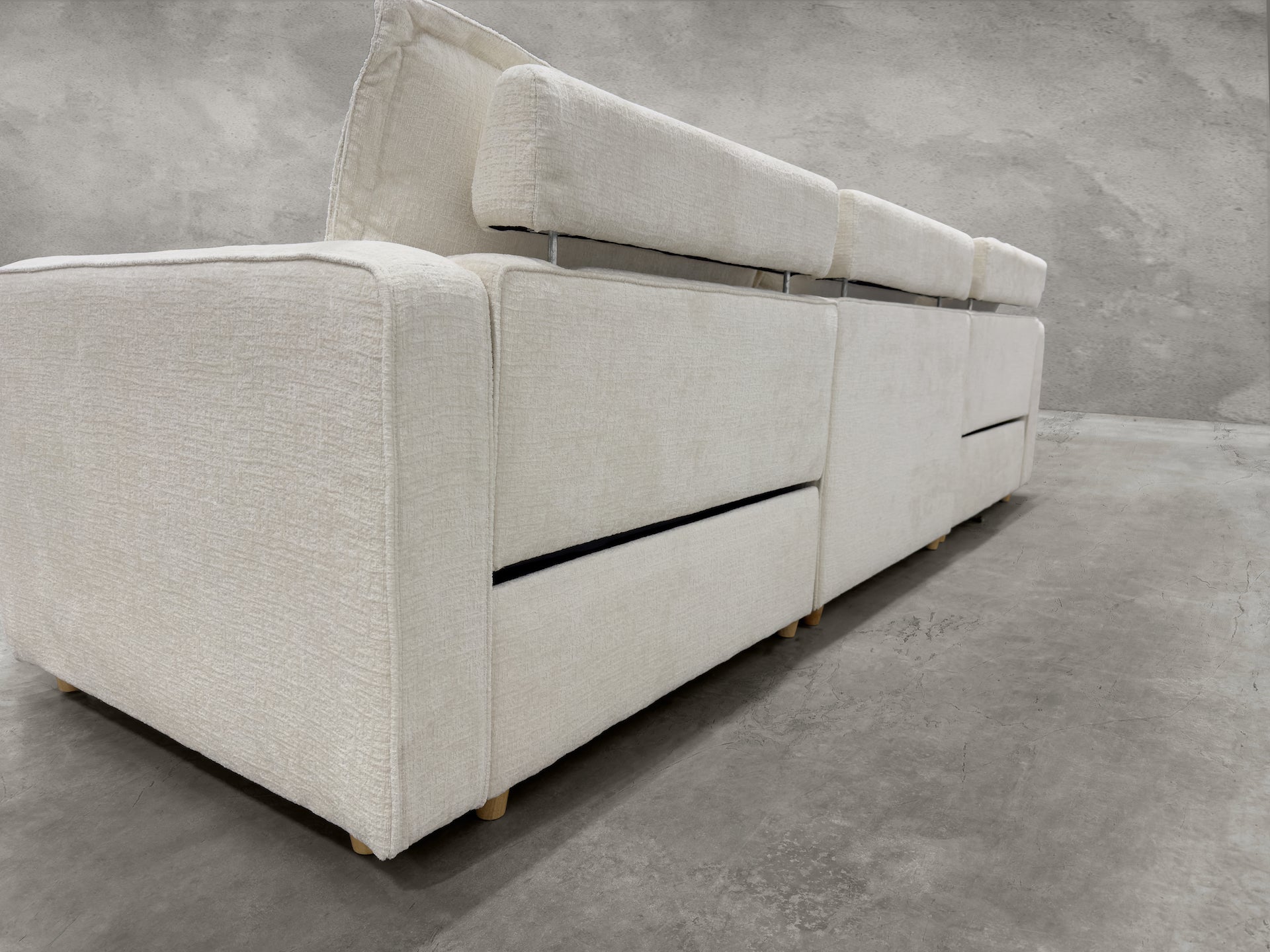 Premium Polyester fabric washable covers Give your furniture a stylish makeover with NIRVANA SECTIONAL! From messy kids to unpredictable pets, this easy-clean fabric has got you covered. No more worrying about spills or stains!
