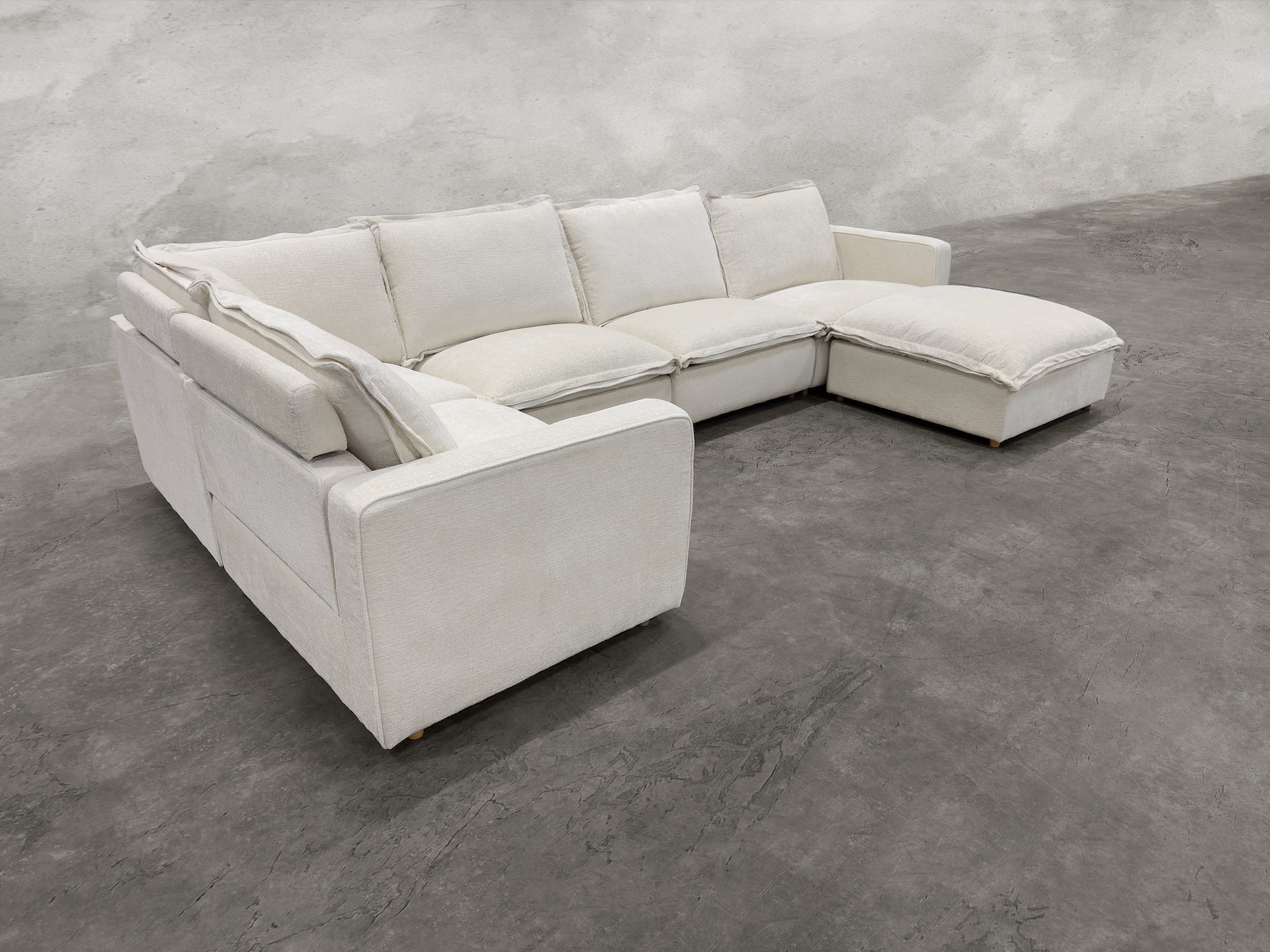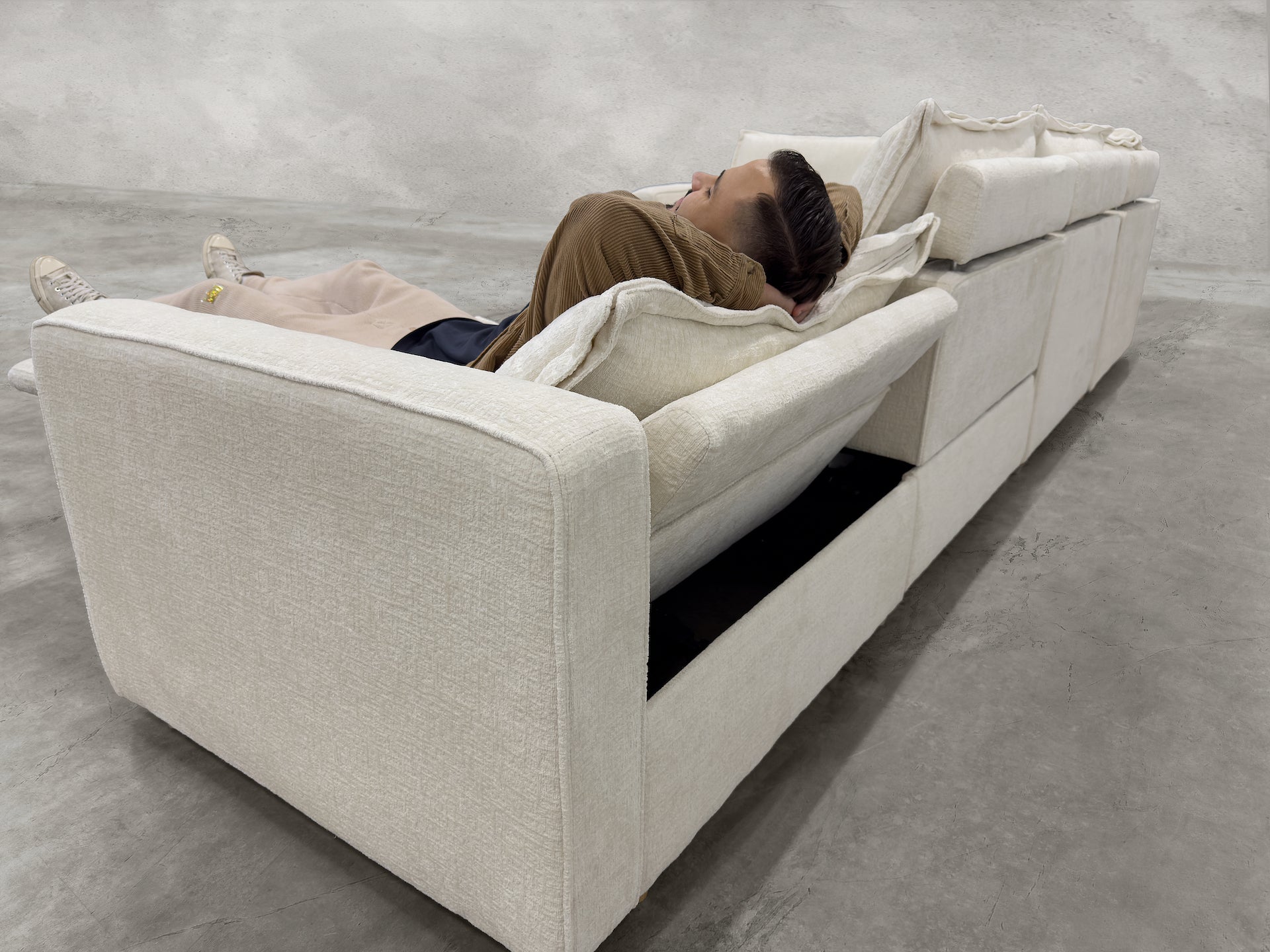 Elevate your relaxation game with The WIDEST and DEEPEST premium sectional that challenges the meaning of true comfort. Boasting dense foam padded with a Hybrid mixture of poly fibers and recycled down & feathers, complete modularity, edgeless design, and other exciting features, the NIRVANA Sectional is a thrill ride for the senses — and your go-to spot for lounging, dozing, and indulging.
